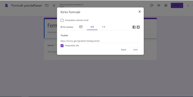 Then fill in, for example, the name Akmal. After filling it in, click send. After clicking the send button, return to the display where you input the form or questions.