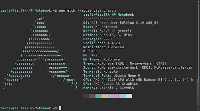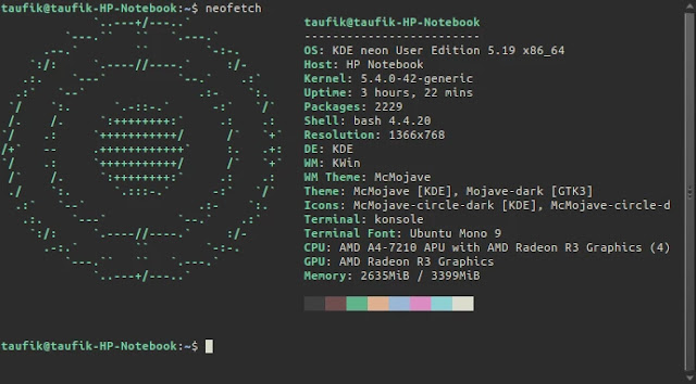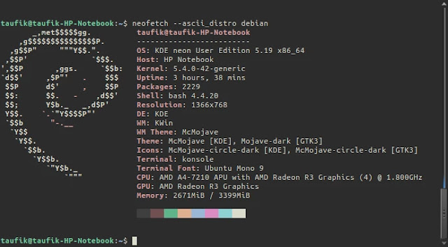 Besides the logo itself, there is some system information you are currently using, starting from the Operating System, Kernel, Uptime, Resolution, and even the color scheme.