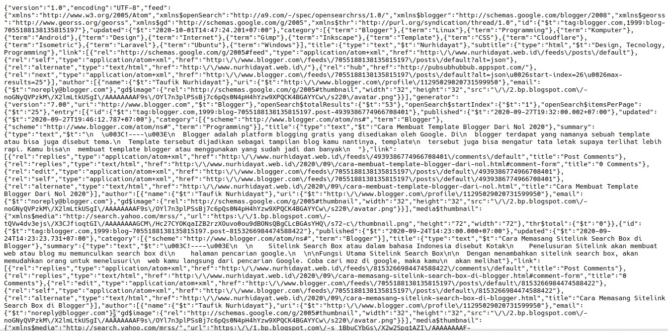 Blogger API V3 is better structured, not messy like URL feeds converted to JSON. Here’s an example: