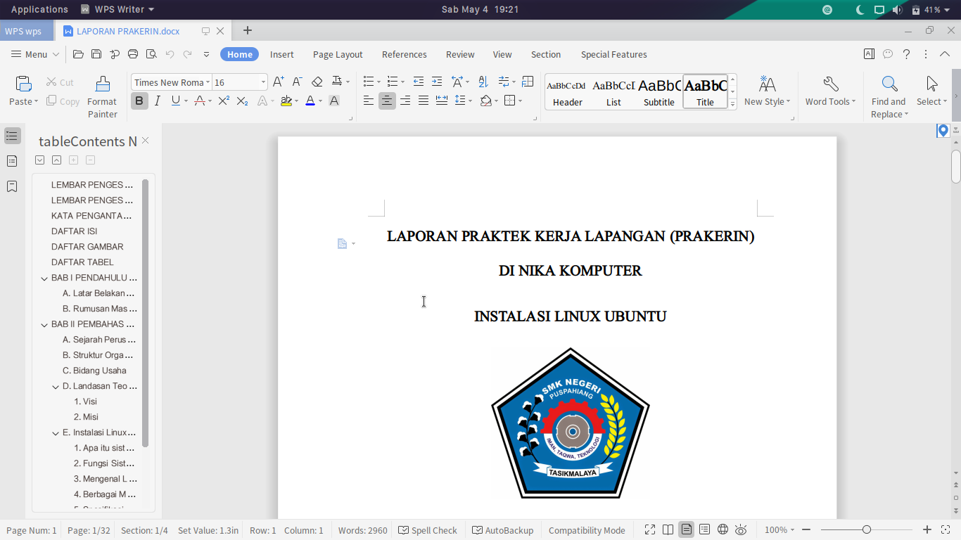 Some time ago, I installed Ubuntu and replaced Windows 10. Initially, it was very good with changing the appearance as desired. However, I encountered problems when there were unfinished school assignments. I tried LibreOffice and the impression was quite good, but all my assignments became messy after I saved and opened them the next day, and even worse, my documents had errors starting from page numbers, images, etc. Until I reinstalled the laptop with Deepin OS which is said to have a very good appearance, and there I tried WPS which gave a quite surprising first impression.